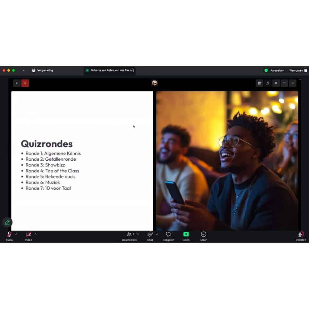 4. Deel je scherm zodat de Quiz zichtbaar is voor alle deelnemers.